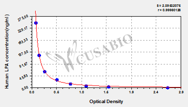 通過線性范圍來計(jì)算出實(shí)際的檢測(cè)樣本值,定量試劑盒標(biāo)準(zhǔn)曲線的相關(guān)系數(shù)R大于0.99。以CSB-E07270h(人脂聯(lián)素(ADP)ELISA Kit)為例的標(biāo)準(zhǔn)曲線。