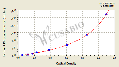 通過(guò)線(xiàn)性范圍來(lái)計(jì)算出實(shí)際的檢測(cè)樣本值,定量試劑盒標(biāo)準(zhǔn)曲線(xiàn)的相關(guān)系數(shù)R大于0.99。以CSB-E07270h(人脂聯(lián)素(ADP)ELISA Kit)為例的標(biāo)準(zhǔn)曲線(xiàn)。