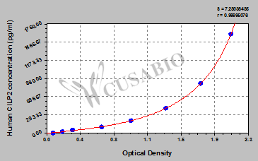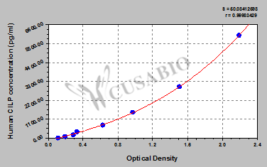 通過(guò)線性范圍來(lái)計(jì)算出實(shí)際的檢測(cè)樣本值,定量試劑盒標(biāo)準(zhǔn)曲線的相關(guān)系數(shù)R大于0.99。以CSB-E07270h(人脂聯(lián)素(ADP)ELISA Kit)為例的標(biāo)準(zhǔn)曲線。
