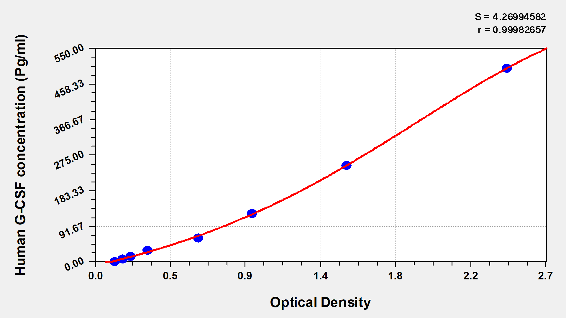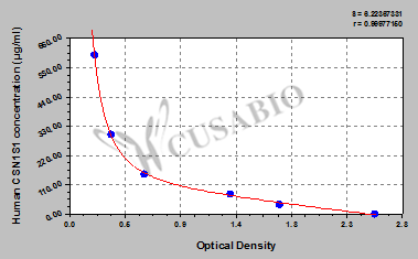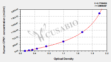 通過線性范圍來計(jì)算出實(shí)際的檢測樣本值,定量試劑盒標(biāo)準(zhǔn)曲線的相關(guān)系數(shù)R大于0.99。以CSB-E07270h(人脂聯(lián)素(ADP)ELISA Kit)為例的標(biāo)準(zhǔn)曲線。