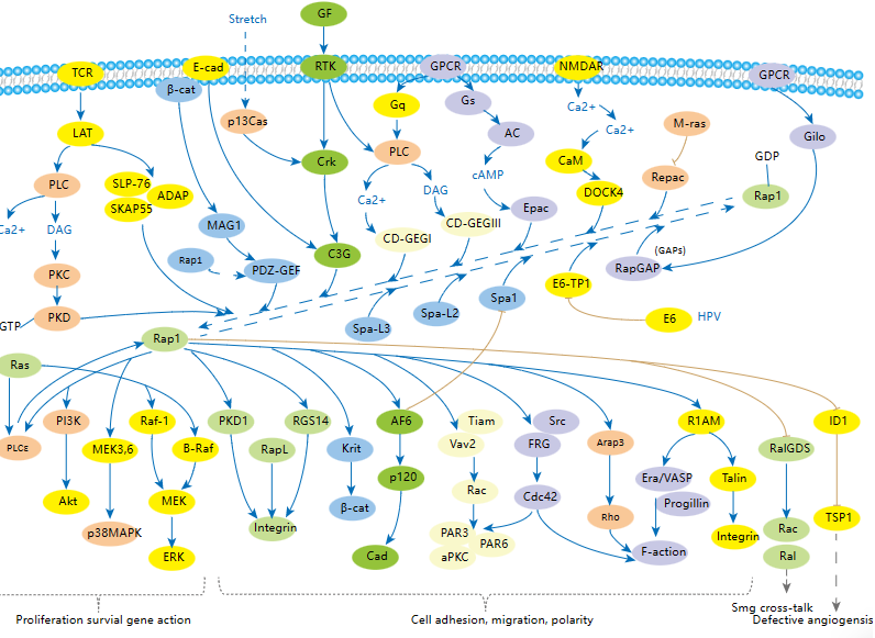 RAP1(Ras-related protein 1)廣泛存在于多種細(xì)胞中,并且在復(fù)雜的信號轉(zhuǎn)導(dǎo)網(wǎng)絡(luò)中扮演著重要的角色的小G蛋白。在細(xì)胞外刺激作用下,