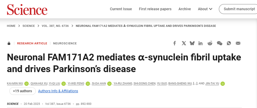 靶點(diǎn)FAM171A2應(yīng)用:帕金森病全新治療靶點(diǎn)來(lái)源:Neuronal FAM171A2 mediates α-synuclein fibril uptake and drives Parkinson s disease Science,2025 Feb 21