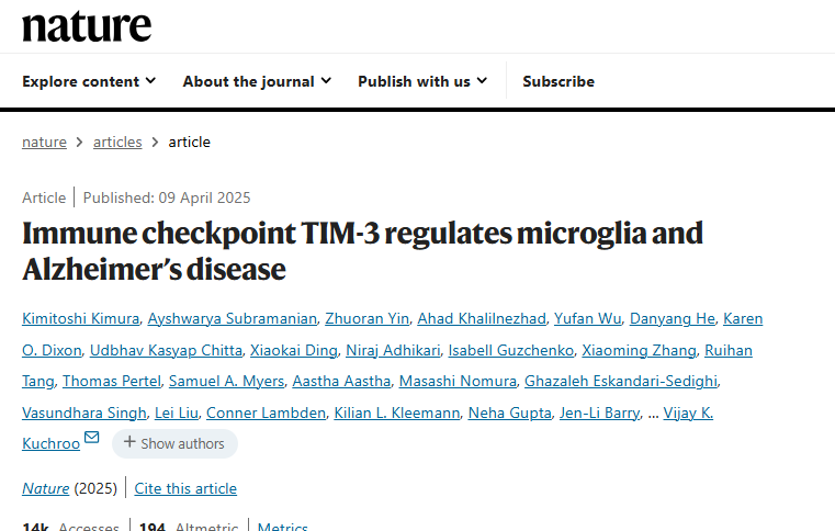 01靶點(diǎn):TIM3 (HAVCR2),應(yīng)用:癌癥免疫治療和阿爾茨海默病,來(lái)源:Immunecheckpoint TIM-3 regulates microglia and Alzheimer s disease Nature,2025 Apr 09