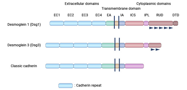 DSG3是DSGs家族成員之一(DSG1、DSG2、DSG3、DSG4)。它們均屬于細(xì)胞粘附分子鈣粘素超家族的成員。近年來對(duì)于