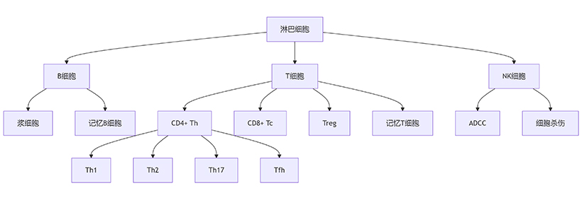 淋巴細(xì)胞是最小的白細(xì)胞,是淋巴器官產(chǎn)生的一種免疫識(shí)別細(xì)胞系。根據(jù)它們的遷移、表面標(biāo)志物和生物功
