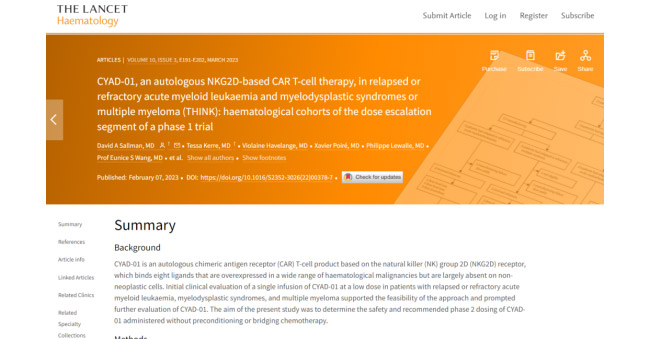 近日,一篇發(fā)表在血液瘤《The Lancet Haematology》知名雜志的研究報(bào)道,多劑CYAD-01治療反復(fù)發(fā)作 難治性急性髓性白血?。ˋML)、骨髓增