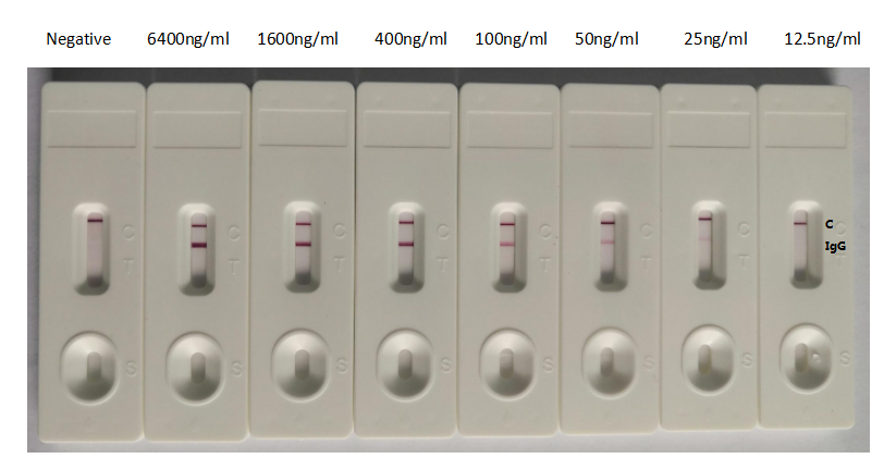 In the GICA detection system, the background of this nanobody antibody is clean, the detection limit can be as low as 25ng/ml (1.75ng/0.07ml), and the sensitivity is very good.