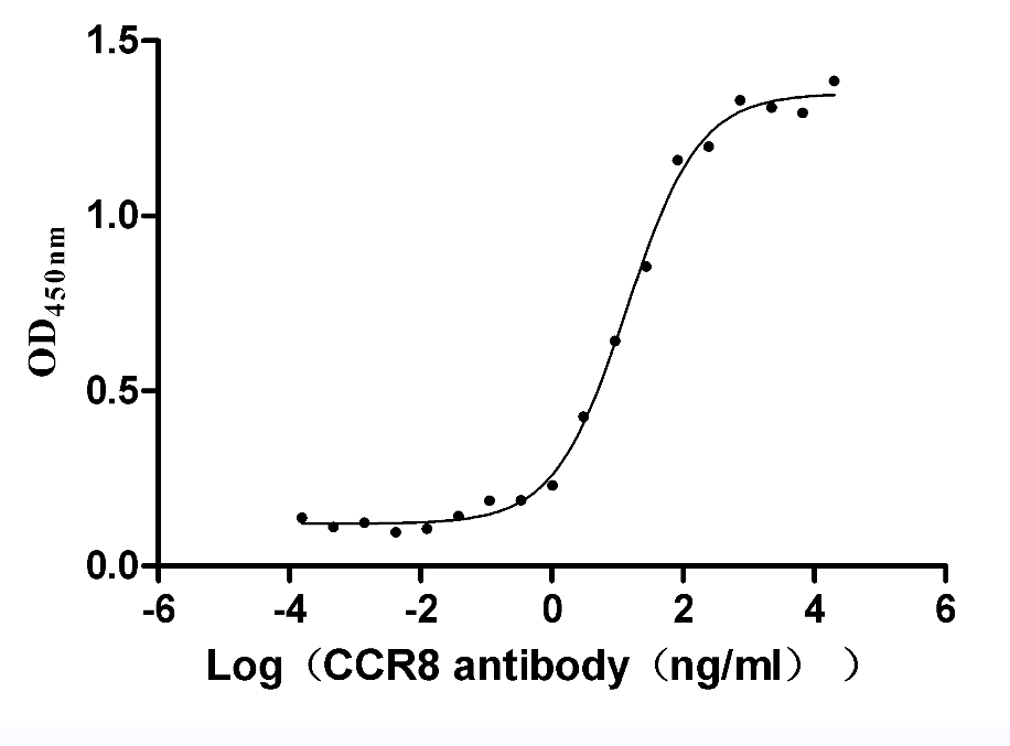 Immobilized human CCR8 at 5 μg/ml can bind Anti-CCR8 recombinant Antibody. The EC50 is 11.13-17.29 ng/mL.