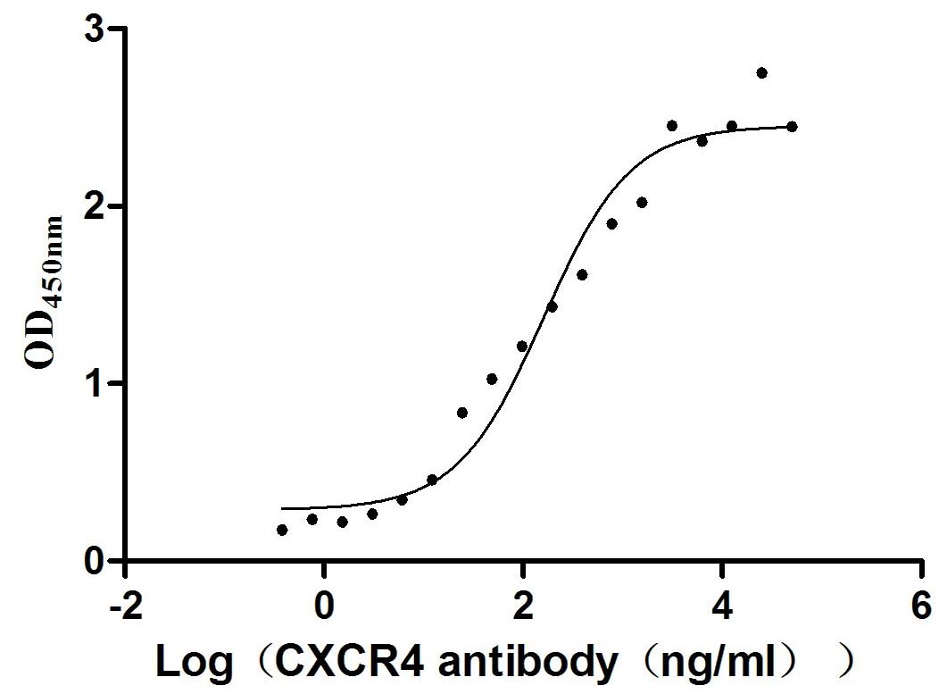 Immobilized Human CXCR4 at 10 μg/ml can bind Anti-CXCR4 recombinant antibody (CSB-RA006254MA01HU), the EC50 is 101.7-253.6 ng/mL.