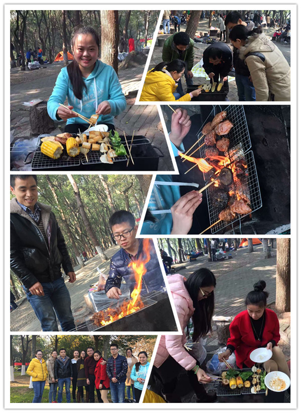 于是我們期待已久的周末計劃----森林公園燒烤游開始了。列好采購清單,分配好任務,協調好人員,周六的時間大家積極的完成自己分配的任務,就等著周末的歡樂時光了,可是晚上一場小雨默默的就來了,著實把大家驚嚇了一把。萬水千山總是情,這是我入職以來與大家的第一次戶外活動,也是我們質量部若干新人的第一次親密接觸,調皮的陽光的撥開了清晨漫天的大霧,爬上了我們的窗臺,頓時心情大好。 按照計劃,大家各自帶著準備的食物和材料陸續(xù)到達目的地---森林公園。陽光下的森林公園,雖然遍是一地金黃的梧桐葉,但依舊阻擋不了我們火熱的心情,絲毫看不出一絲的蕭條。人聚齊以后,大家七手八腳,洗菜的洗菜,串串的串串,生火的生火,拾掇的拾掇,當然少不了饞嘴的在一旁巴巴的看著。萬事俱備,大家一心火熱的開始了烤肉,秘制的韓式烤肉,隨著爐子飄起的火苗,滋滋的響著,散發(fā)著誘人的香味,再灑上一把飄香的干粉,大家都吃的津津有味,連連稱贊,此時的肖書圣,舒成闖和高霞盡顯大廚風范,給大家烤出了美味的牛肉,雞翅,香菇,玉米等等,我等也躍躍欲試,奉獻出了自己的手藝。歡笑聲中,不知不覺時間已偷偷溜走,酒足飯飽,大家當然不能放過如此好的陽光和空氣,拿出羽毛球拍開始活動筋骨,卸去了一身的疲勞,以輕快的身姿準備迎接新的一周的工作。休息之余,大家又開始了紙牌游戲狼人殺,開始斗智斗勇,狡猾的狼人一直在隱藏,無辜的村民被殺害,大家沉浸在緊張的氣氛中,不知不覺太陽已悄然西落,戀戀不舍,開始了歸程。