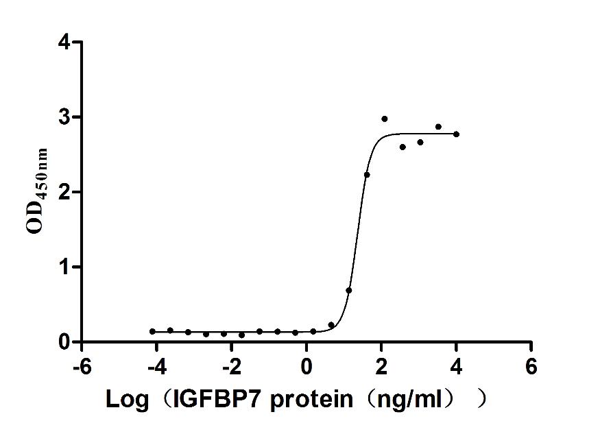 Activity: Measured by its binding ability in a functional ELISA. Immobilized Mouse CD93 at 2 μg/mL can bind Mouse IGFBP7 (CSB-MP713980MO), the EC50 is 373.4-836.8 ng/mL.