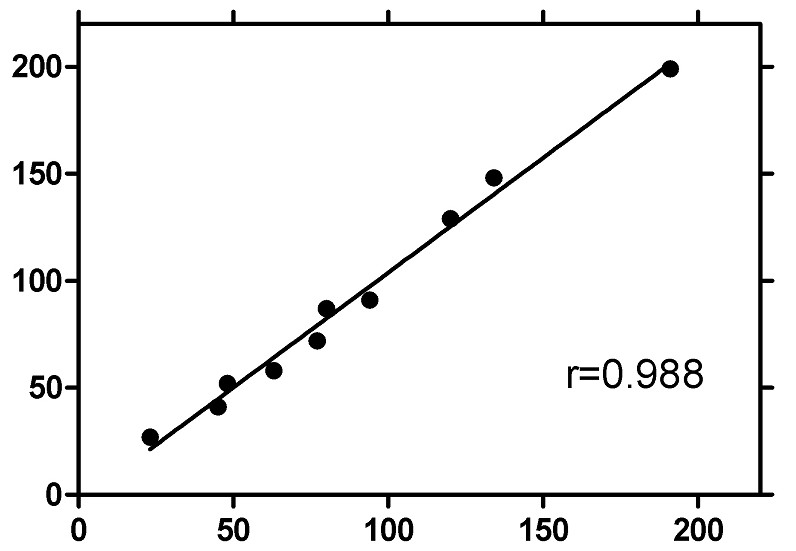 圖1.2 某單抗膠乳增強(qiáng)免疫比濁法臨床對(duì)比結(jié)果