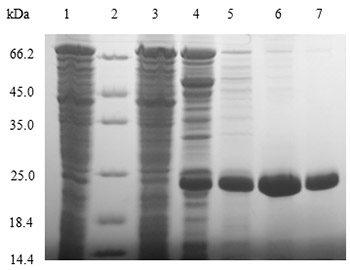 泳道4-7:不同梯度洗脫下來的目的蛋白