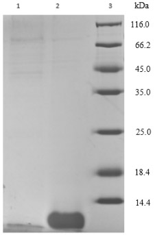 難點(diǎn):46氨基酸,7kDa,分子量非常小,相對(duì)來說不太容易檢測(cè)及濃縮,從SDS-PAGE檢測(cè)圖來看表達(dá)、純化、收集都非常成功。