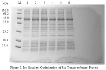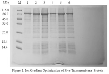 以下三個(gè)蛋白質(zhì)分別具有5、6和7個(gè)跨膜結(jié)構(gòu)域。由于在體內(nèi)表達(dá)系統(tǒng)中難以表達(dá)多次跨膜蛋白質(zhì),或者產(chǎn)量非常低,華美生物使用無(wú)細(xì)胞表達(dá)系統(tǒng)來(lái)制備這三個(gè)蛋白質(zhì)。為了增加產(chǎn)量,我們嘗試了各種表達(dá)條件供客戶(hù)選擇。圖1、2和3分別展示了這三個(gè)蛋白質(zhì)在不同條件下的小規(guī)模表達(dá)情況,并選擇最佳條件進(jìn)行大規(guī)模表達(dá)。