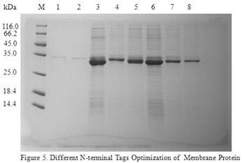 這個(gè)項(xiàng)目的蛋白質(zhì)產(chǎn)量很低,華美生物采用無(wú)細(xì)胞表達(dá)系統(tǒng),通過(guò)優(yōu)化不同的N-末端肽,產(chǎn)量顯著提高,如圖5所示。
