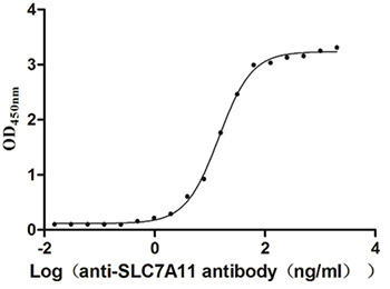 Activity: Measured by its binding ability in a functional ELISA. Immobilized human SLC7A11 at 2 μg/ml can bind anti-SLC7A11 recombinant antibody, the EC50 is 12.70-16.68ng/ml