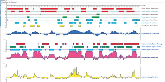 Uniprot數(shù)據(jù)庫和CBS服務器(http://www.cbs.dtu.dk/)預測信號肽、跨膜、表位等結構;EX-PASY服務器(http://www.expasy.org/tools)上的GOR4、HNN、SOPMA、nnPredict等方法。親水性、柔韌性、表面可能性、抗原表位預測、α螺旋和β折疊可以應用DNAstar軟件預測,同時可以結合Uniprot數(shù)據(jù)中的蛋白結構分析。MOE軟件也可以預測蛋白的結構,同時MOE軟件可以從多個角度分析蛋白的結構特性。