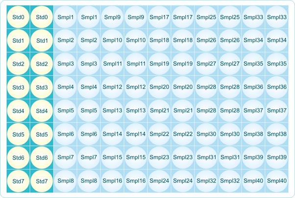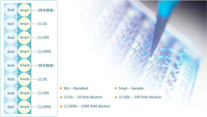4、預(yù)實(shí)驗(yàn)確定樣本合適的稀釋倍數(shù),下面進(jìn)行正式實(shí)驗(yàn),排版如下,注意做好標(biāo)識,正式實(shí)驗(yàn)操作步驟請參考相應(yīng)的說明書。